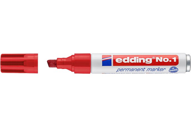 Popisovač Edding No.1 má skosený hrot a ťahy s ním tak dokážete jednoducho meniť od jemnejšieho po širšie. Atrament bez zápachu a bez pridaného toluénu / xylénu. Vodeodolný, rýchloschnúci a odolný proti opotrebeniu takmer na všetkých povrchoch.