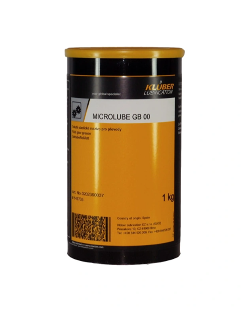 Klüber MicroLube GB 00 je špeciálne plastické mazivo na báze ropného oleja neobsahujúce pevnú mazaciu látku. Je odolné voči vysokému tlaku, má dobré antikorózne vlastnosti, chráni pred opotrebovaním, preukazuje dobrú schopnosť mazania, odoláva vode a má vynikajúcu roztekavosť.