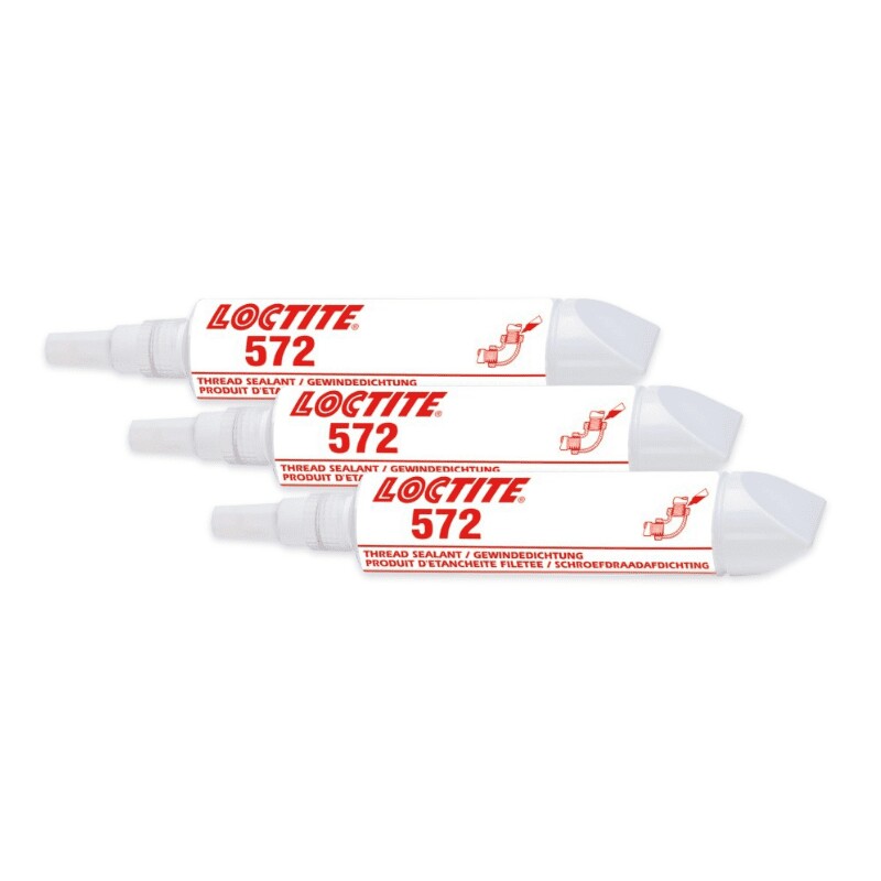LOCTITE 572 je určený pre tesnenie a zabezpečovanie kovových rúrok a tvaroviek. Produkt vytvrdzuje bez prístupu vzduchu v škáre medzi lepenými kovovými povrchmi a zabraňuje uvoľneniu alebo presakovaniu spoja, ktoré je spôsobené vibráciami a otrasmi. Tixotropný charakter LOCTITE 572 zabraňuje jeho stekaniu z miesta nanesenia.
